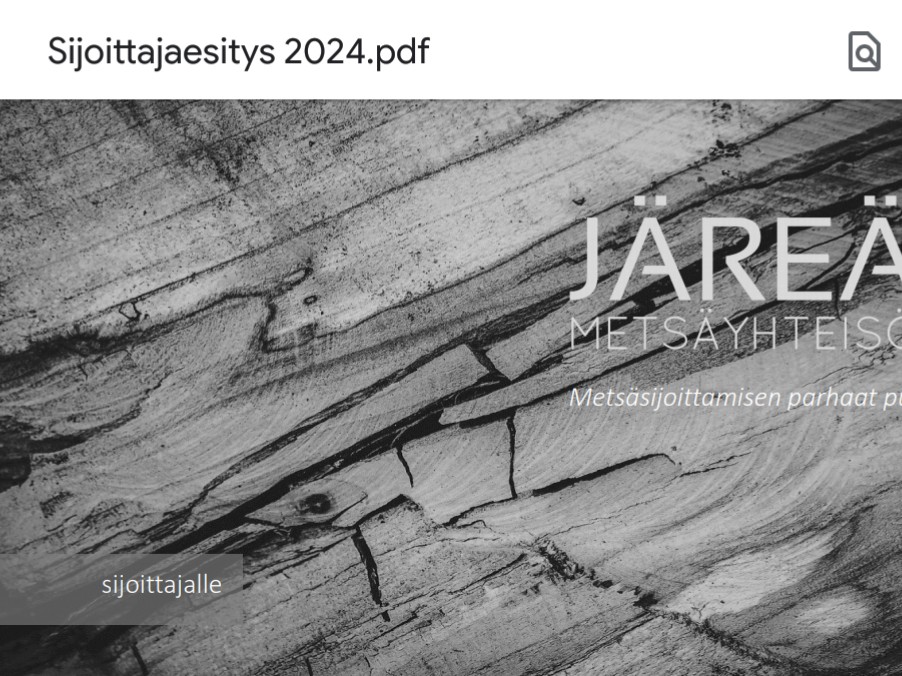 Järeän osakkaat ovat saaneet uunituoreen 2024 sijoittajaesityksen sähköposteihin jolla voit esitellä Järeän toimintaa kiinnostuneille.