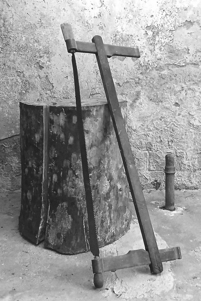 Digitaalinen Maaseutumuseo. Työ metsässä. Pokasaha 1920-1950. Saha koostuu kolmesta puuosasta; pääpuista ja välipuusta jotka muodostavat H-kirjaimen muodon. Alapäässä kapea käännettävä metallinen sahanterä joka voitiin vaihtaa. Pääpuut kiristettiin kiristysnarulla (ei kuvassa) jonka keskellä oli ns. kirikapula. Naru oli manilla- tai hamppuköyttä. Kiristys tapahtui kiertämällä narua kirikapulan lukittuessa välipuuta vasten. Pokasaha mahdollisti yhden miehen työskentelyn toisin kuin aiemmin käytetty kaksimiehinen justeeri. Pokasahan nimitys "nälkäviuluna" kuvasti 1930-luvun lamaa, niukkuutta ja raskasta työn luonnetta. 1950-luvulle tultaessa metallirunkoiset kaarisahat syrjäyttivät puiset pokasahat.